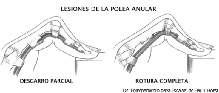 Hay dos tipos de lesión que pueden sufrir las poleas en escalada: